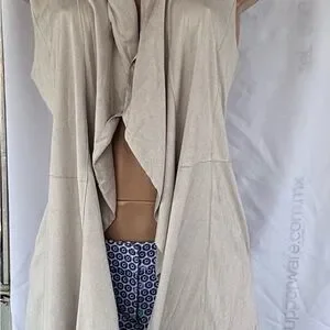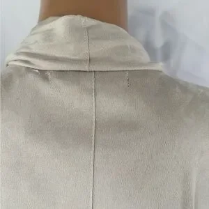 Stylish tan drape vest. Sleeveless design. Perfect for layering.