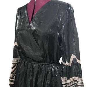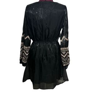 SAVANNA JANE Taking a Shine Embroidered Long Sleeve Dress Black Tan NWT Large