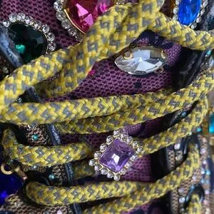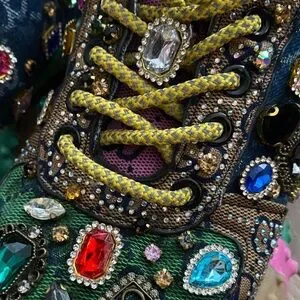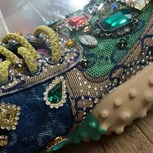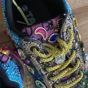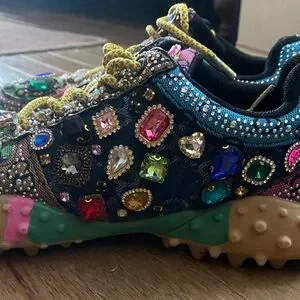 Step out in style with these embellished women's sneakers, featuring a dazzling array of multicolor gems. Perfect for adding a unique touch to any outfit. Some Bling have fallen off
