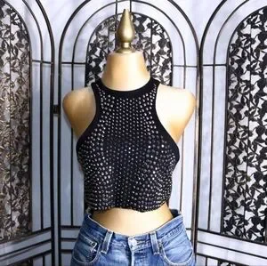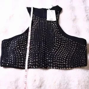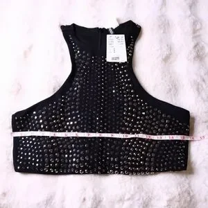 Black Studded Women's Crop Top, Medium, Night Out Tops