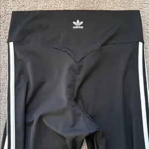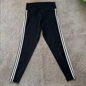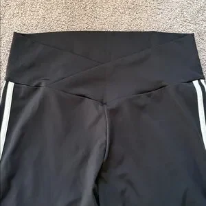 Adidas crossover waist leggings; size xl; black w/classic white stripes; flattering butt cut w/logo; worn & washed twice