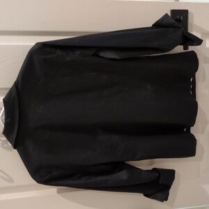 New with tags Chico's sateen Merrin 7/8 jacket black size 2 (equivalent to standard size 12). Button front blazer style, very stretchy! Sleeves can be cuffed or full length.