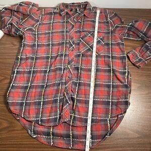 BDG Plaid Flannel & Yarn Textured Button-Up Shirt Red Soft Size Small Petite SP