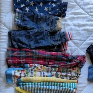 sweater, flannel, onesies, adorable baby boden collection 6-12 months. all fantastic shape. I don't think the pants were ever worn or the onesies. great shape