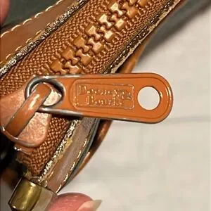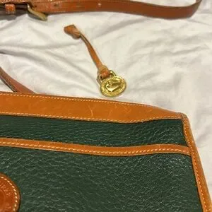 Vintage Green Dooney & Bourke Crossbody Bag. Good vintage condition. Has some light scratch marks near the top part of the bag near the zipper and some wear near corner edges as shown. Has some pen marks and signs of wear inside the front pocket section. Please review photos closely for condition. Includes the original Dooney & Bourke hang tag.