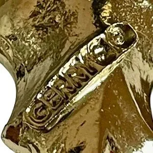 Classic! Vintage signed Gerry’s goldtone and enamel Christmas holly brooch. Measures about 2.5”. In excellent condition.