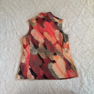 This top is a colorful addition to your golf wardrobe! Sleeveless design with a quarter zip neckline. Comfortable material in a pretty print to help you stand out on the course! Pair with your favorite golf skirt or shorts and you’re ready to go!
