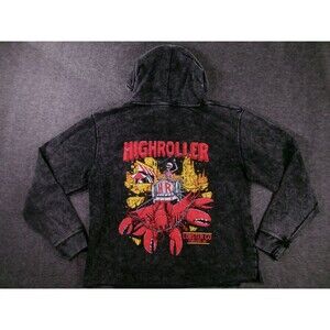 Highroller Hoodie Mens L Black Graphic Lobster Co Portland Pullover Hooded Washed
