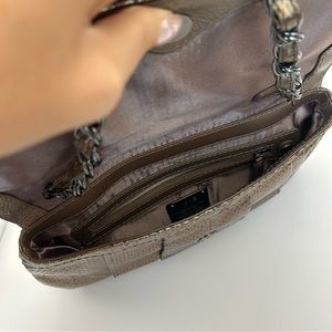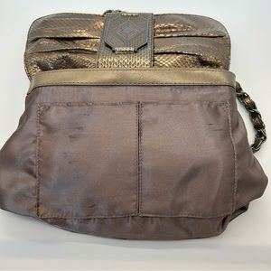 RAFE New York Shoulder Bag Chain Genuine Python Snake Skin Metallic Bronze