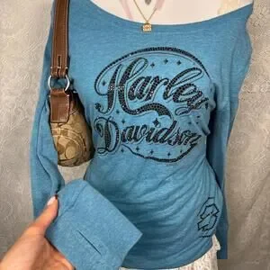 y2k bedazzled harley davidson long sleeve