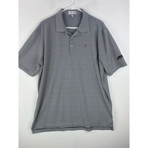 Peter Millar Summer Comfort Golf Polo Shirt Men XL Navy Blue Striped Embroidered