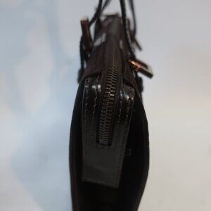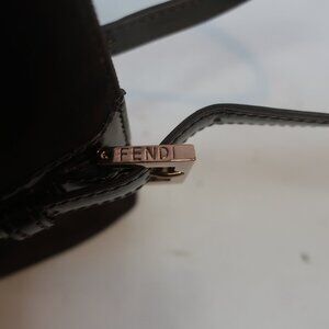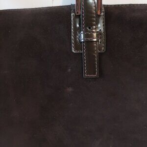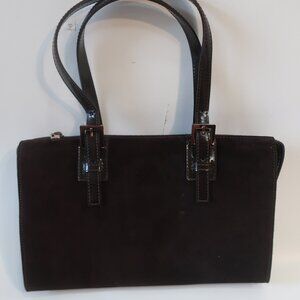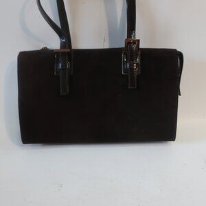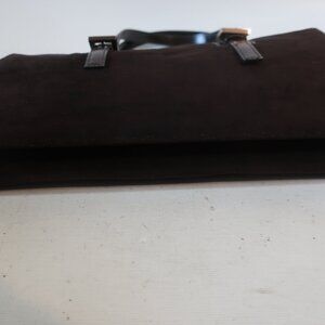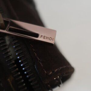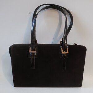 Authentic Fendi Dark Brown Suede Leather Borsa Manici Satchel Shoulder Handbag