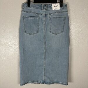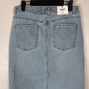 NEW OAT New York Denim Midi Front Slit Skirt Womens Size 6/28 Light Wash