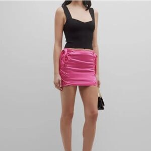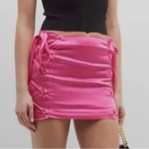 NWT Dundas Women's Pink Bambi Lace-Up Satin Mini Skirt Size IT40 US4