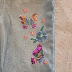 Charming light blue jeans with vibrant butterfly accents. Flare leg style for a trendy look. New but no tags never worn just washed.
