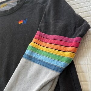 Aviator Nation Black Sweatshirt with Seven Stripe Sleeves, size xs