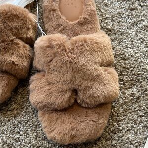 Soft brown, fuzzy slippers and earring set. Includes pearl drop earrings. Both brand new with no flaws. Perfect for comfort and style. Let free, smoke free home. Great Christmas present!🎁