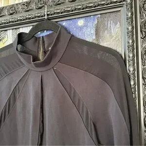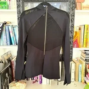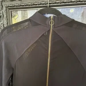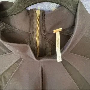 EUC Free People Black Long Sleeve Top Sheer panel zip neck size medium black
