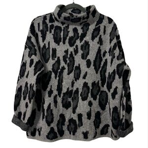 Catherine Malandrino Cashmere Animal Print Gray & Black Mock Neck Sweater size L