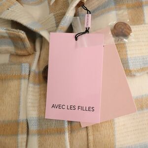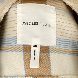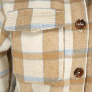 Avec Les Filles Jacket Womens XS Beige Ivory Blue Plaid Flannel Top Shacket New