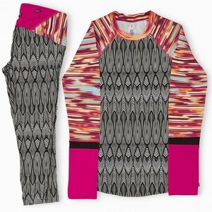 prAna Geometric Ikat Long Sleeve Top & Capri Legging Set XS Bundle