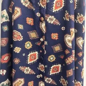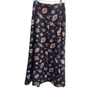 PAMELA B Maxi Skirt Southwestern Print Button Front Navy Blue Rayon Women's VTG