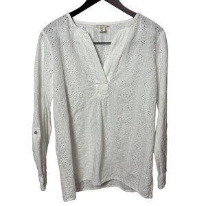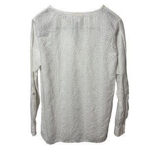 Christian Siriano Womens SZ M White Eyelet blouse linen blend