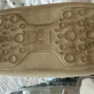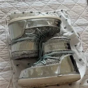Sparkly silver boots with glitter accents. Stylish and fun for kids.
