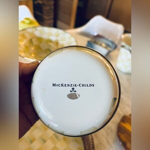 Elegant wooden tray featuring the MacKenzie-Childs logo. Perfect for serving or display.