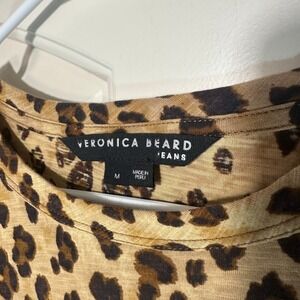 Veronica Beard Porter Leopard Puff Sleeve Tee Brown Womens Med Boho Pima Cotton