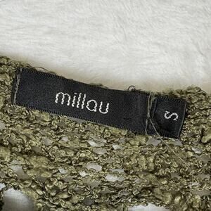 The Millau Pullover Sweater in size small is a stylish and versatile piece made from 100% cotton. The olive green color and open-knit design give it a unique and on-trend look, perfect for casual, workwear, or travel occasions. With a crew neck and long sleeves, this sweater is comfortable and easy to care for with its machine washable fabric. The Millau brand and the sweater's solid pattern, along with its 90s, Y2K, grunge, and witchy core themes, make it a must-have addition to any woman's wardrobe.