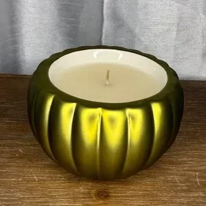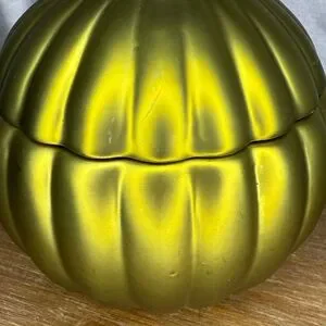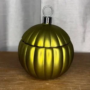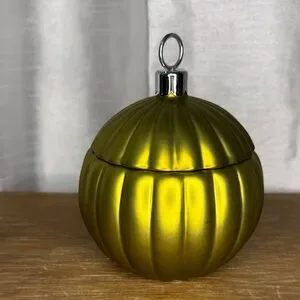 Ceramic Metallic Green Gold 6” Ornament Candle Display with Lid