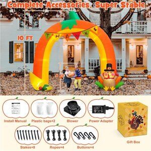 🧿🍊 All-Inclusive Package: Pumpkin & turkey inflatables outdoor archway comes complete with everything you need to set up this Thanksgiving decor outdoor, including the inflatable itself, 8 ground stakes, 4 ropes, 2 waterbags and 1 install manual. Setting it up is a breeze, and when the Fall season comes to an end, it easily deflates for hassle-free fold and store in the box