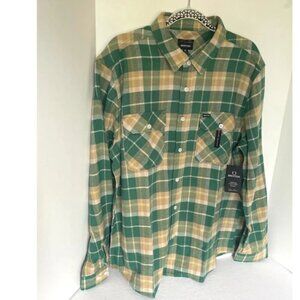 Brixton Bowery Flannel Shirt Mens Extra Large Green Plaid Button Down Gorpcore