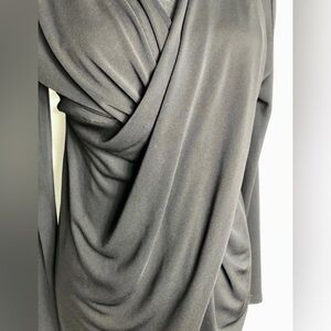 The quintessential little black dress! Black cross front long sleeve dress by NY & Co. Knee length. Drapes in front. V Neck. Was part of their Collection line.