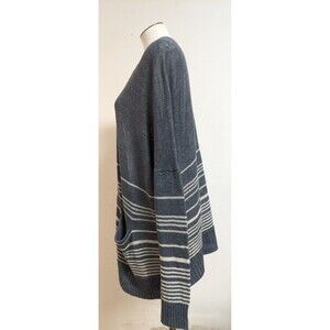 The Margaret O'Leary 100% Linen Gray/White Striped Oversized Cardigan Sweater in size 2 or Small is a stylish and versatile piece perfect for various occasions such as travel, casual outings, workwear, and business meetings. This open-knit sweater features long dolman sleeves, a V-neckline, and a relaxed fit, making it comfortable and on-trend. The classic striped pattern in white and gray adds a touch of sophistication, while the linen fabric is perfect for the warmer seasons of spring and summer. Made by the designer brand Margaret O'Leary, this cardigan sweater exudes a bohemian, beachy vibe with a hint of city style.