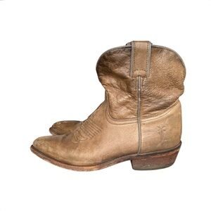 Vintage Frye White Label Tan Leather Western Cowgirl Ankle Boots Size 9