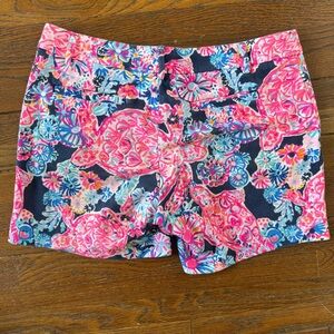 Material is cotton-poly-rayon blend, soft and cool with a bit of stretch. Inseam is 6.5”