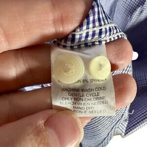 Both of these shirts are in excellent preowned condition with mild wear. First shirt is made of 100% cotton with a button down collar. The other is made of nylon and spandex for outdoor activities.