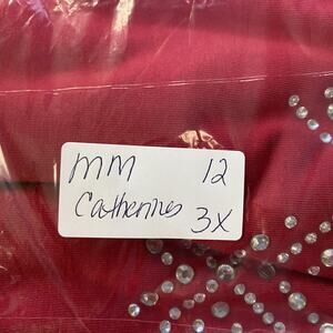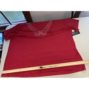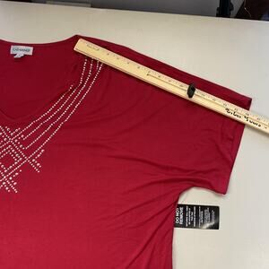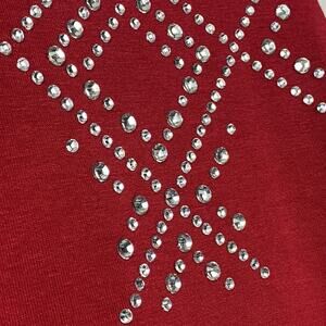 Catherines Top 3X Red Rhinestone Embellished V Neck Dolman Slinky Knit Glam