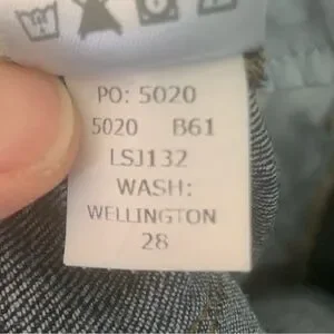 Size 28. Style# LSJ132 Cut 5020. Wellington Wash. Material: 94% cotton 4% polyester