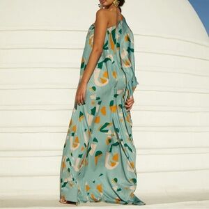 Diarrablu Satu Dress Green and Orange One-Shoulder Asymmetrical Kaftan Size L