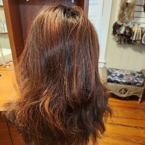 Enhance your look with this auburn brown wig. Natural waves and full volume. Perfect for any occasion.