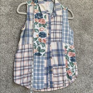 Y2K Cottagecore Floral Plaid Patchwork Button Down Tank Top