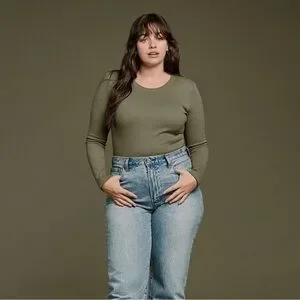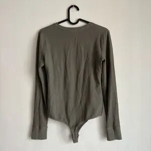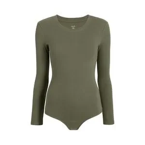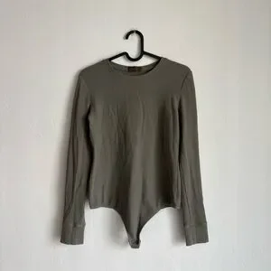 Nuuds Long Sleeve Ribbed Crewneck Bodysuit olive Size S