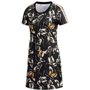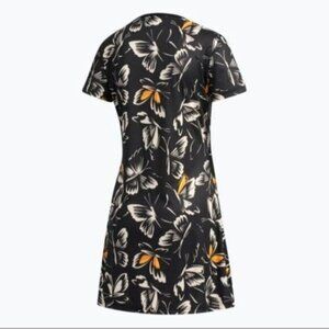 ADIDAS Farm Rio T-Shirt Dress Black Floral Butterfly Print Sporty Athleisure