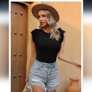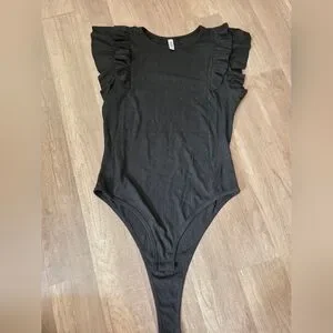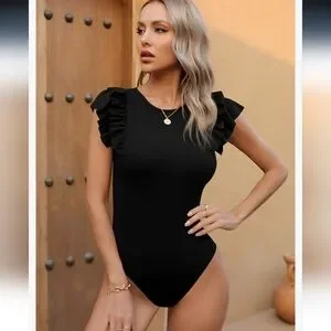 Amazon Missufe Flutter Sleeve Bodysuit Ribbed Black Skims Casual Shapewear