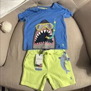 Joules Blue Shark T-Shirt and Yellow Shorts Set