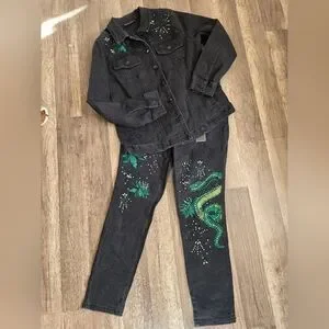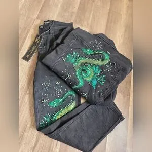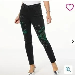 DG2 Diane Gilman New Classic Stretch Legacy Embellished Skinny Jeans Dragon Y2K