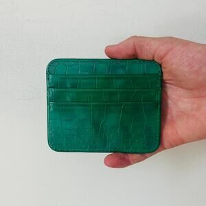 green vintage crocodile print both sided card holder
